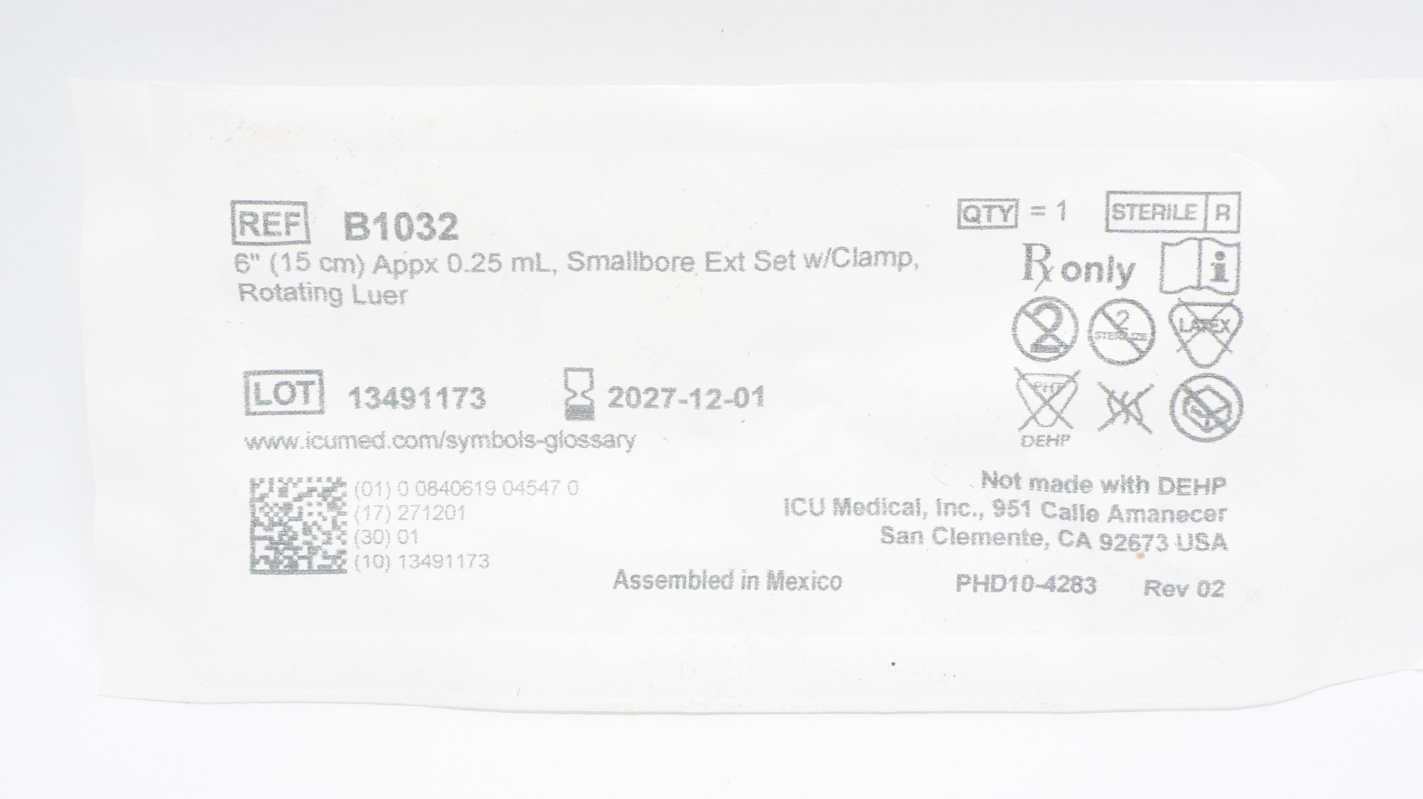 - ICU Medical B1032 Smallbore Extension Set 6 inch Appx. 0.25mL