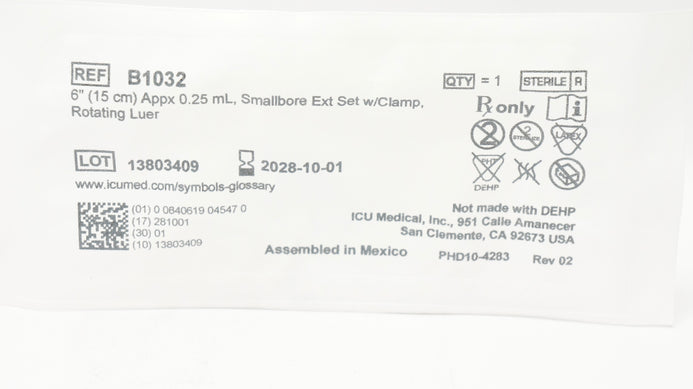 - ICU Medical B1032 Smallbore Extension Set 6 inch Appx. 0.25mL