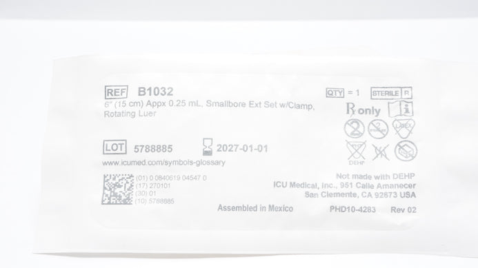 - ICU Medical B1032 Smallbore Extension Set 6 inch Appx. 0.25mL