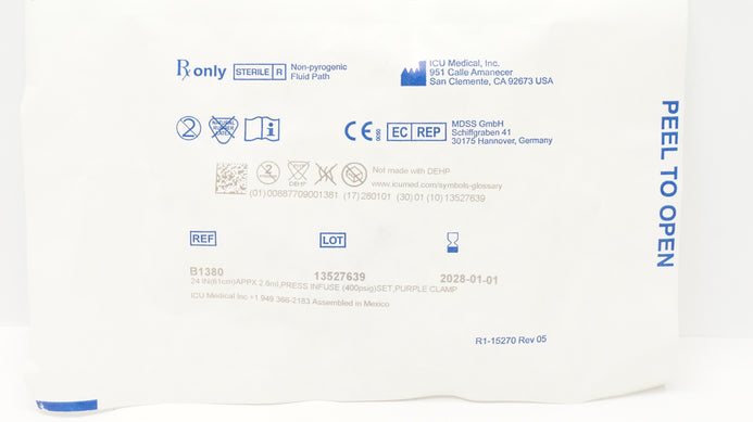 - ICU Medical B1380 Press Infuse Set, Purple Clamp 24inch x 2.6ml (Approx.)