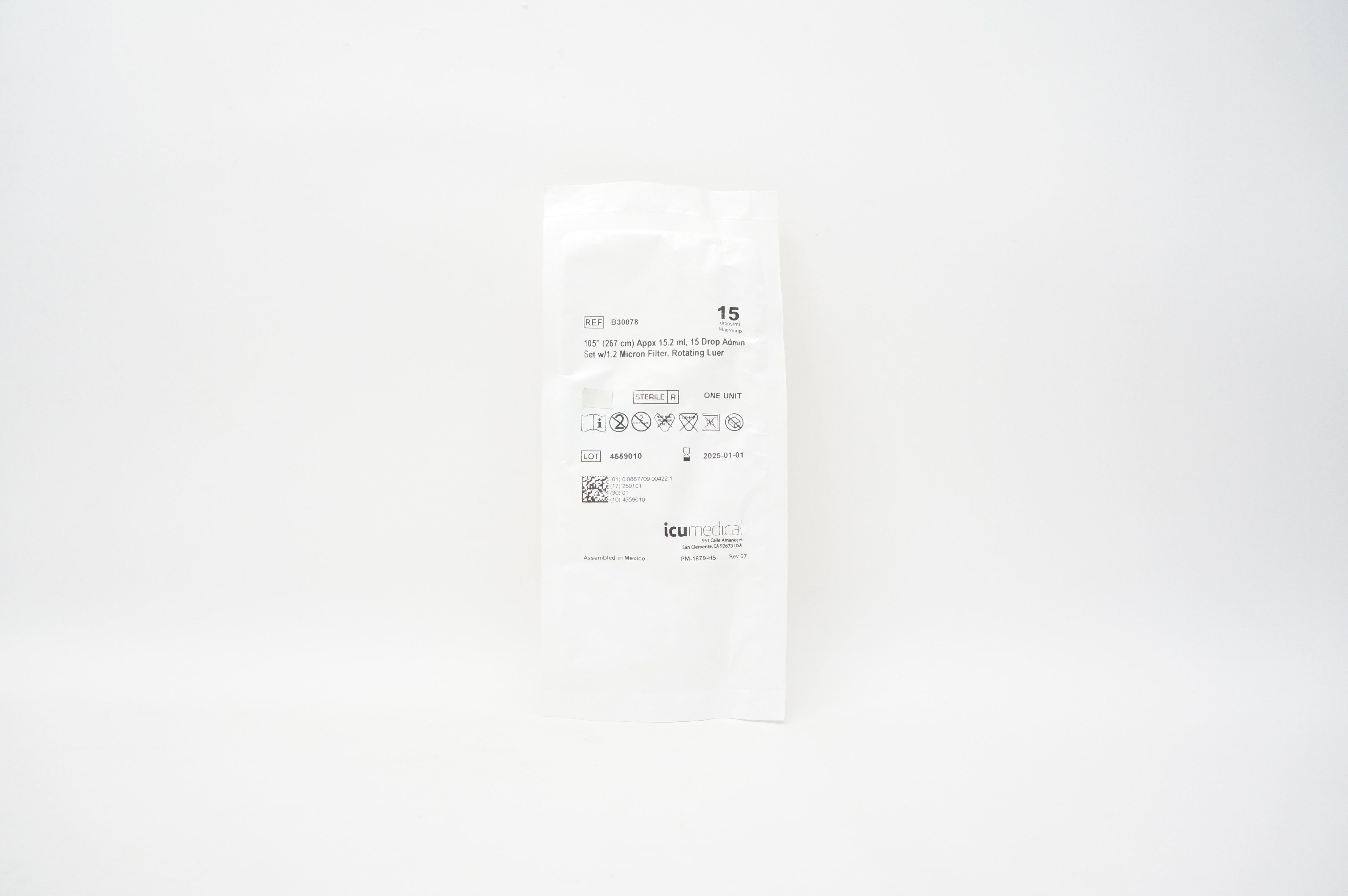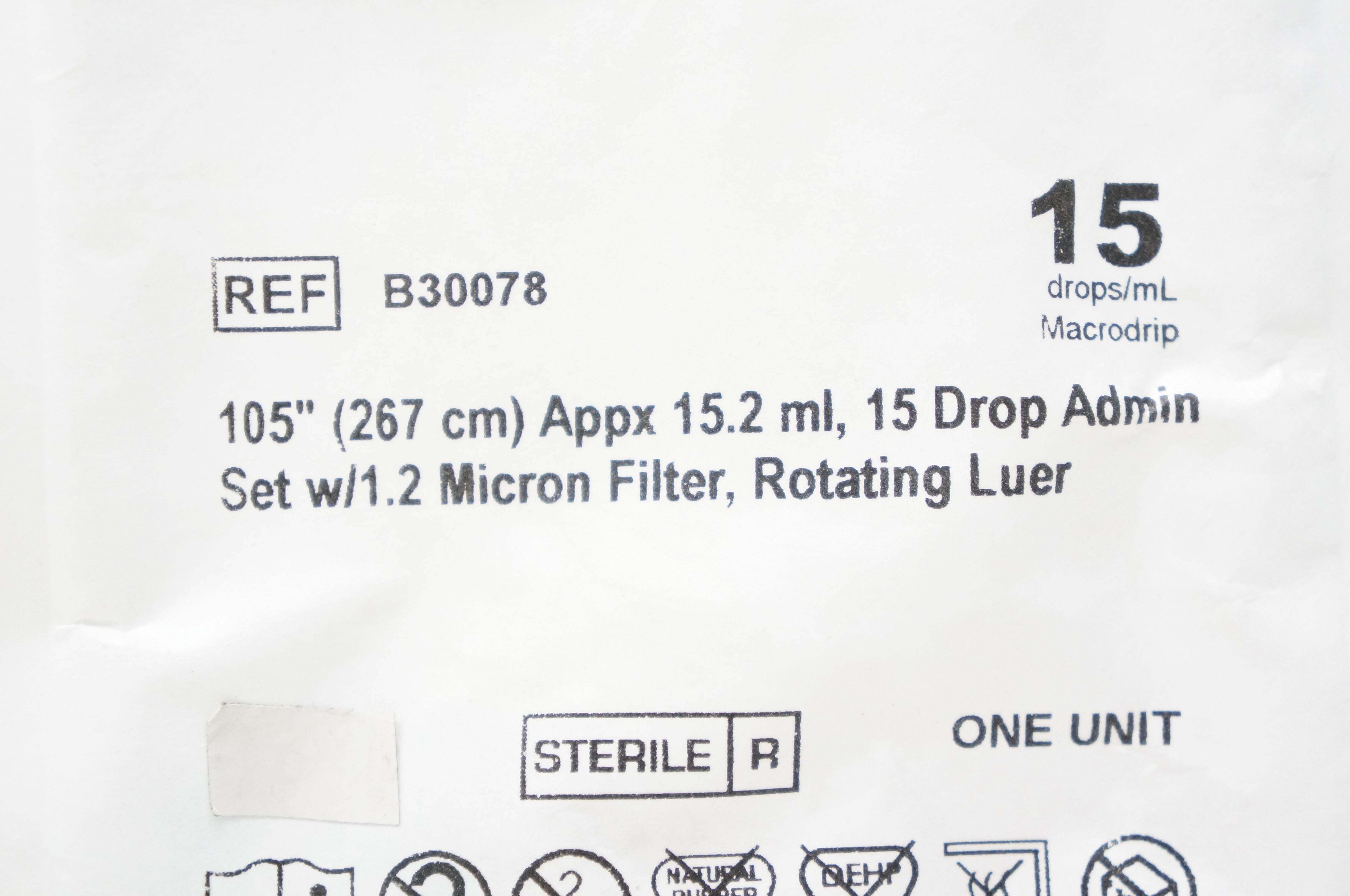 - ICU Medical B30078 105inch Appx 15.2ml 15 Drop Admin Set w/1.2 Micron Filter