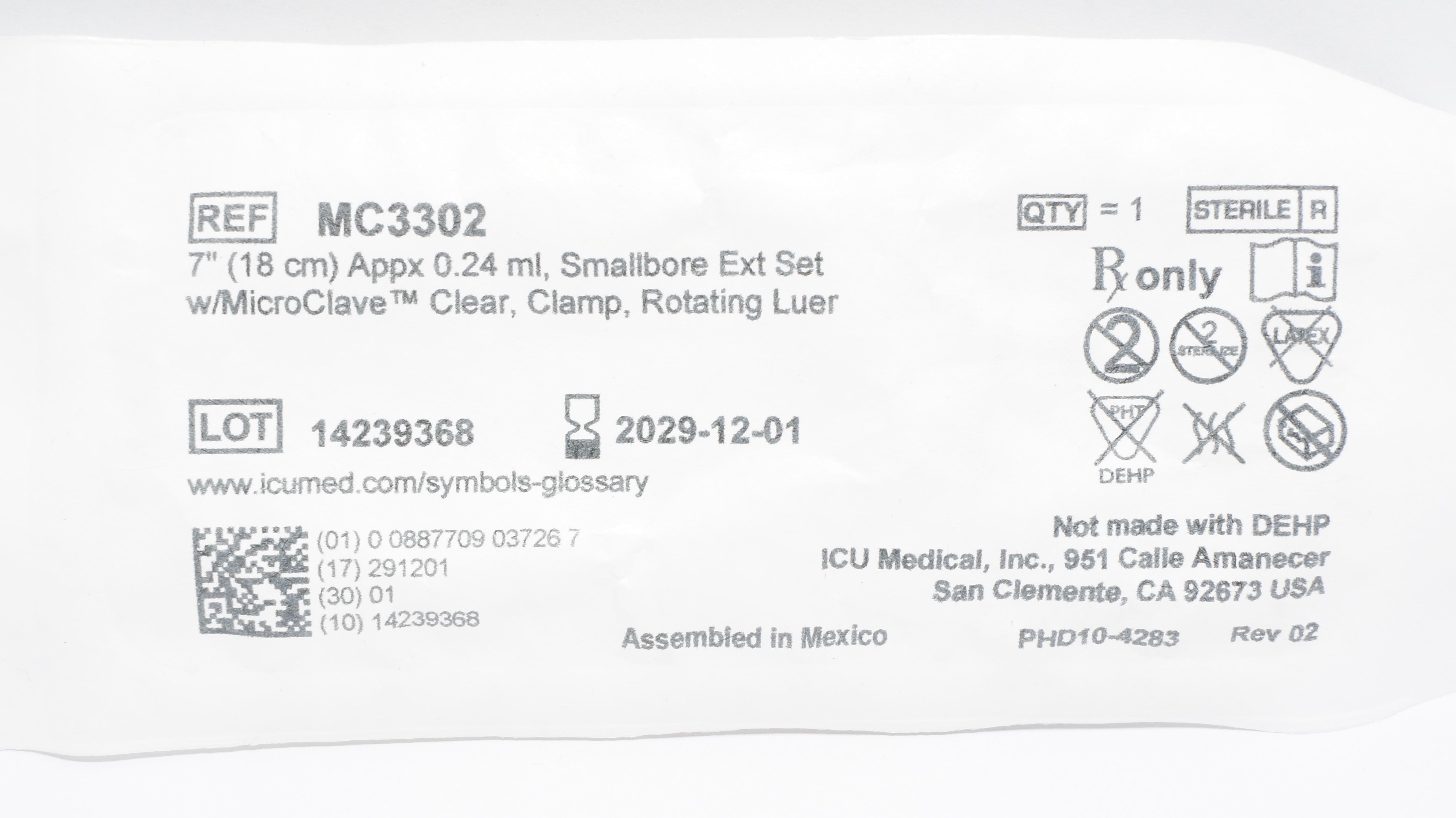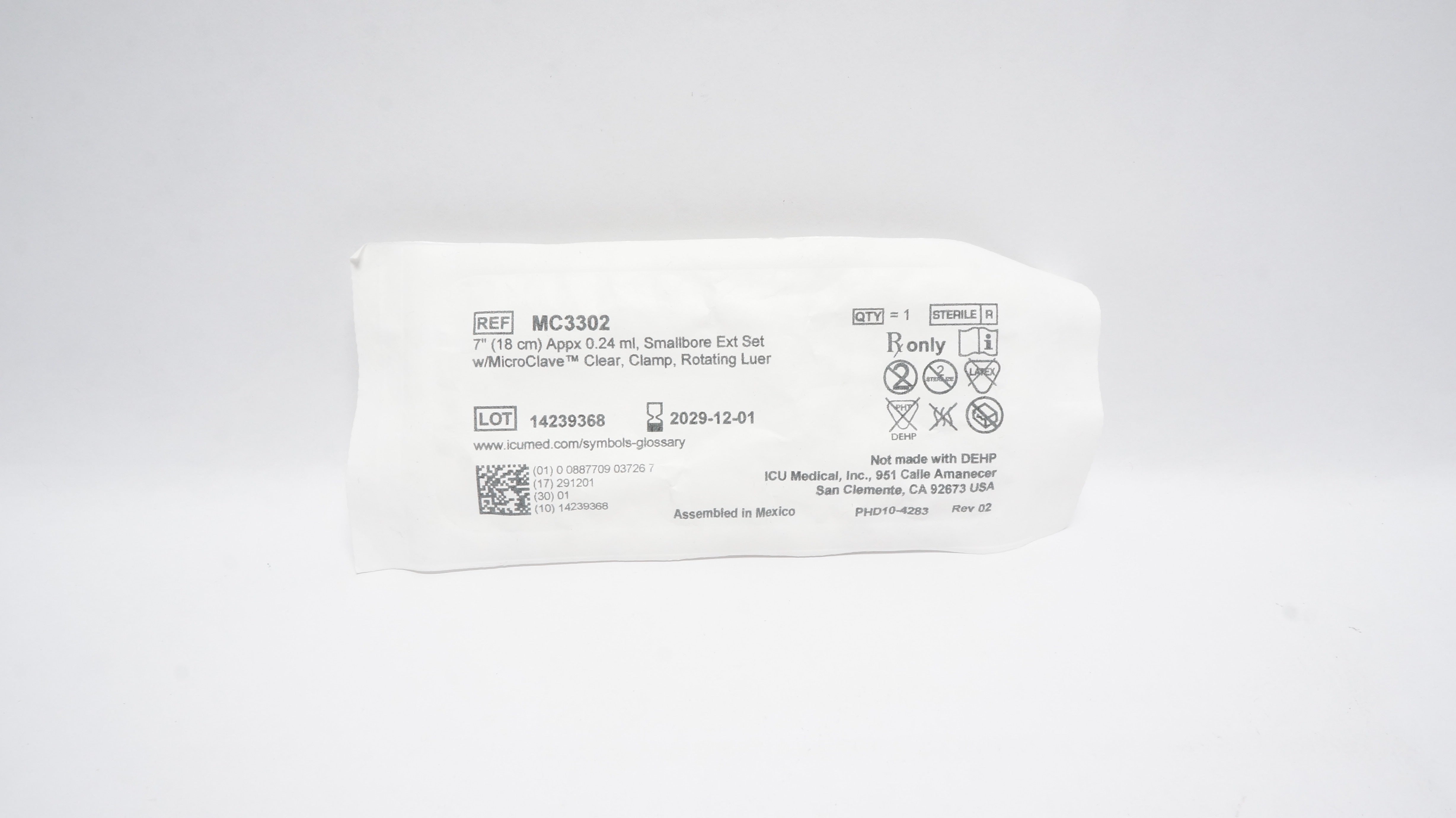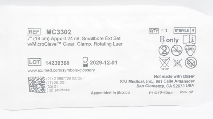 - Icu Medical MC3302 7inch Smallbore Ext Set w/MicroClave Clear, Rotating Luer