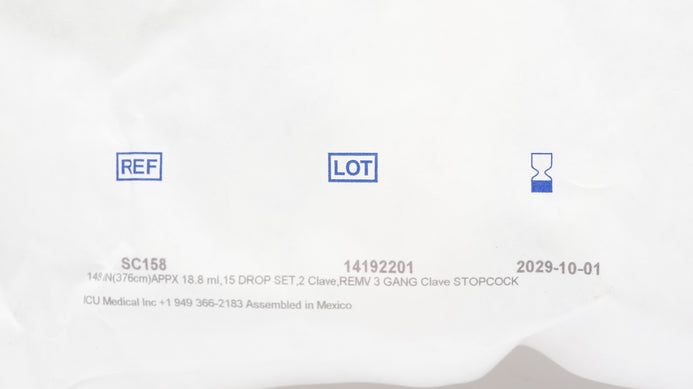- ICU Medical SC158 148in 15-Drop Set w/2 Clave Remv 3 Gang 4-Way Clave Stopcock
