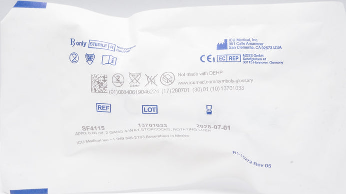 - ICU Medical SF4115 Appx 0.66ml 2 Gang 4-Way Stopcocks Rotating Luer