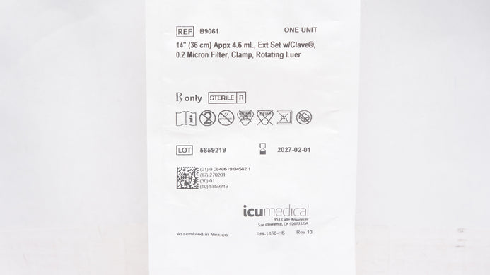 - IcuMedical B9061 Extension Set W/ Rotating Luer, Clamp, Filter 14inch x 4.6mL