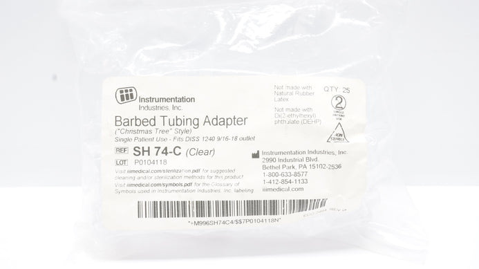 - Instrumentation Industries SH74-C Barbed Tubing Adapter - Pack of 25