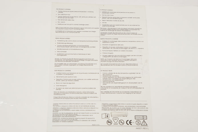 - Integra 110-4HMT Micro Ventricular Bolt Pressure-Temperature Monitoring Kit (x)