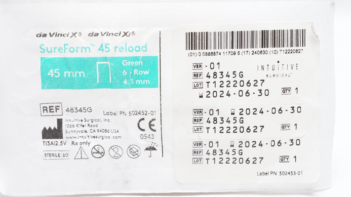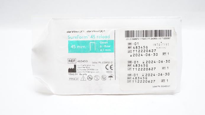 - Intuitive 48345G da Vinci X Xi SureForm Stapler 45mm Reload Green 6-Row 4.3mm(x)