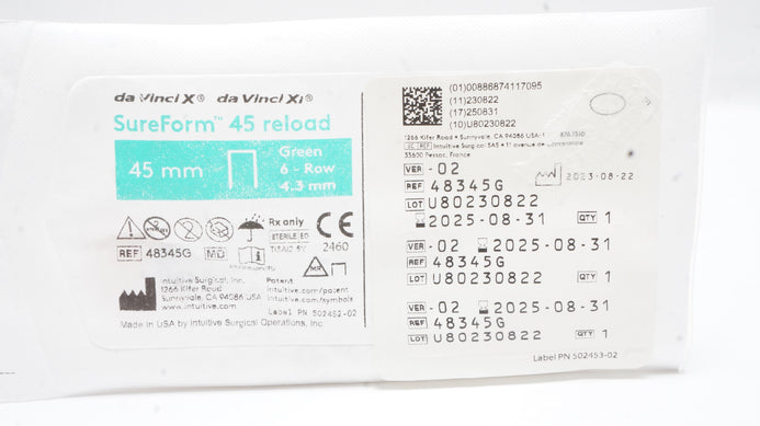 - Intuitive 48345G da Vinci X, Xi SureForm Stapler 45mm Reload Green 6-Row 4.3mm