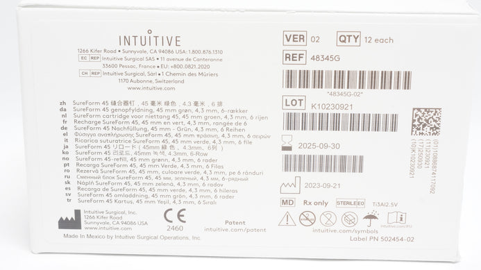 - Intuitive 48345G SureForm Stapler 45mm Reload Green 6-Row 4.3mm (x) - Box of 12