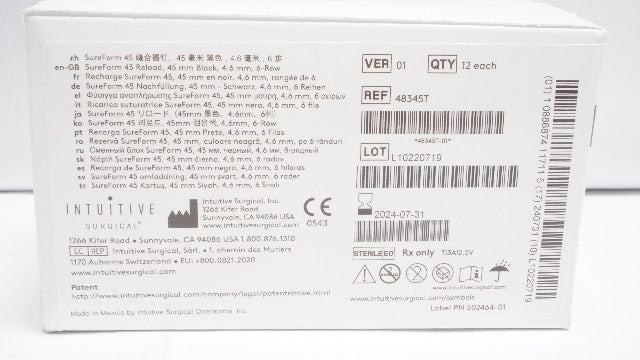 - Intuitive 48345T da Vinci Xi SureForm 45mm Reload Black 6-Row 4.6mm(x)-Box of 12