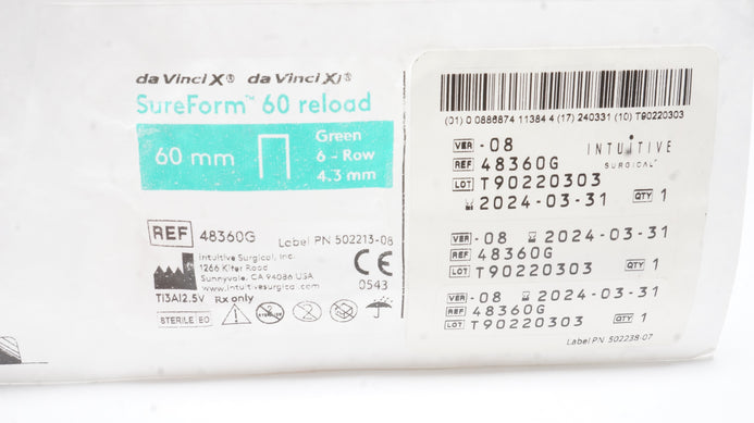 - Intuitive 48360G da Vinci X Xi SureForm Stapler 60mm Reload 6-Row 4.3mm (x)