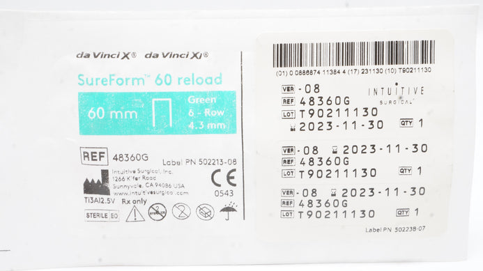 - Intuitive 48360G da Vinci X Xi SureForm Stapler 60mm Reload 6-Row 4.3mm (x)