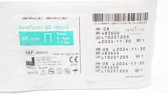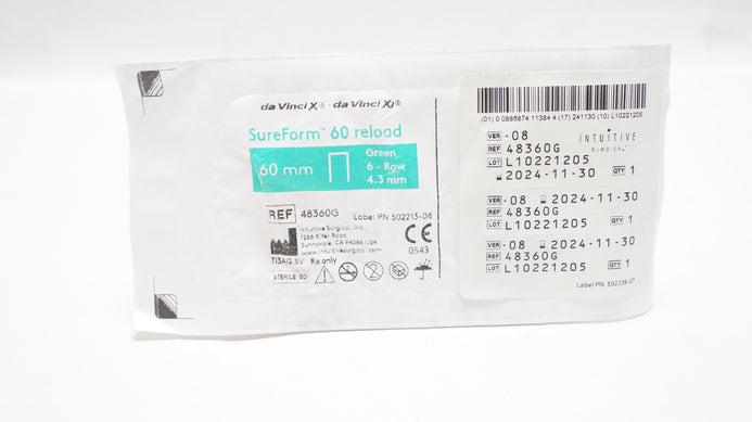- Intuitive 48360G da Vinci X, Xi SureForm Stapler 60mm Reload 6-Row Green, 4.3mm