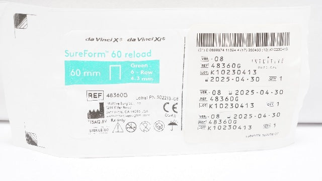 - Intuitive 48360G Da Vinci X Xi SureForm Stapler 60mm Reload 6-Row Green 4.3mm(x)