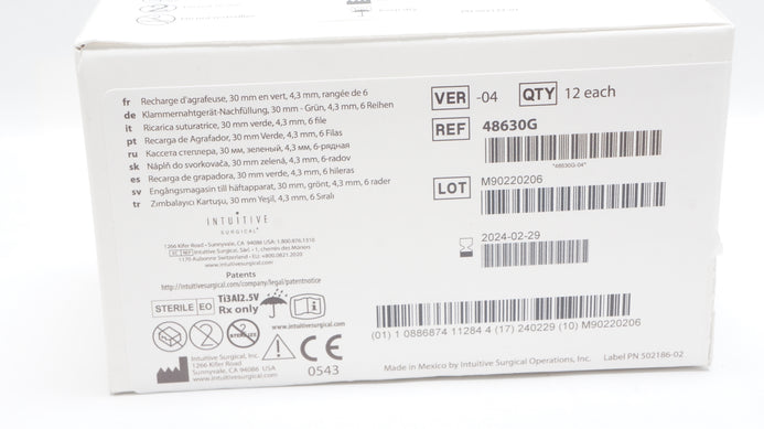 - Intuitive 48360G daVinci X Xi SureForm Stapler 60mm Reload 4.3mm (x) - Box of 12
