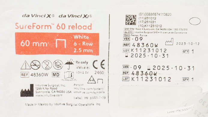 - Intuitive 48360W daVinci X Xi SureForm 60 Reload 6-Row White 60mm x 2.5mm