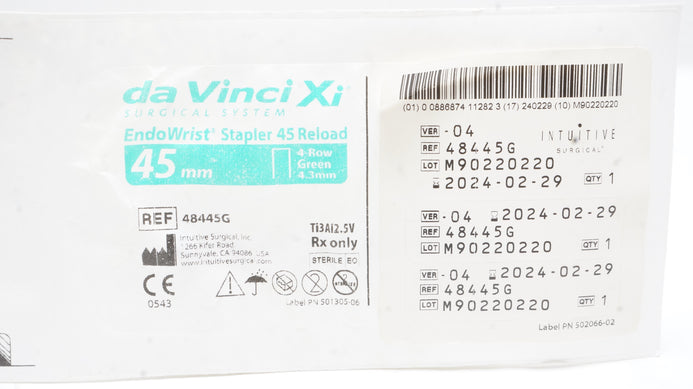 - Intuitive 48445G Endo Wrist Stapler 45 Reload Green 45mm 4-Row 4.3mm (x)