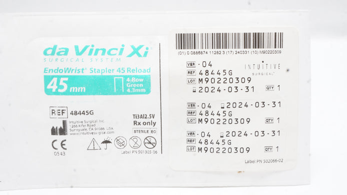 - Intuitive 48445G Endo Wrist Stapler 45 Reload Green 45mm 4-Row 4.3mm (x)