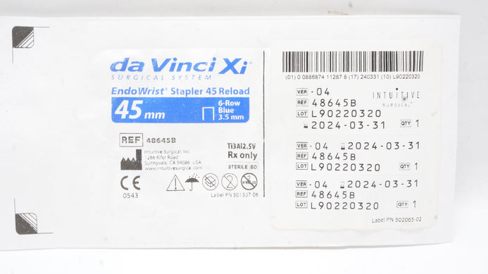 - Intuitive 48645B Da VinciXi EndoWrist Stapler 45 Reload 45mm 6-Row 3.5 mm (x)