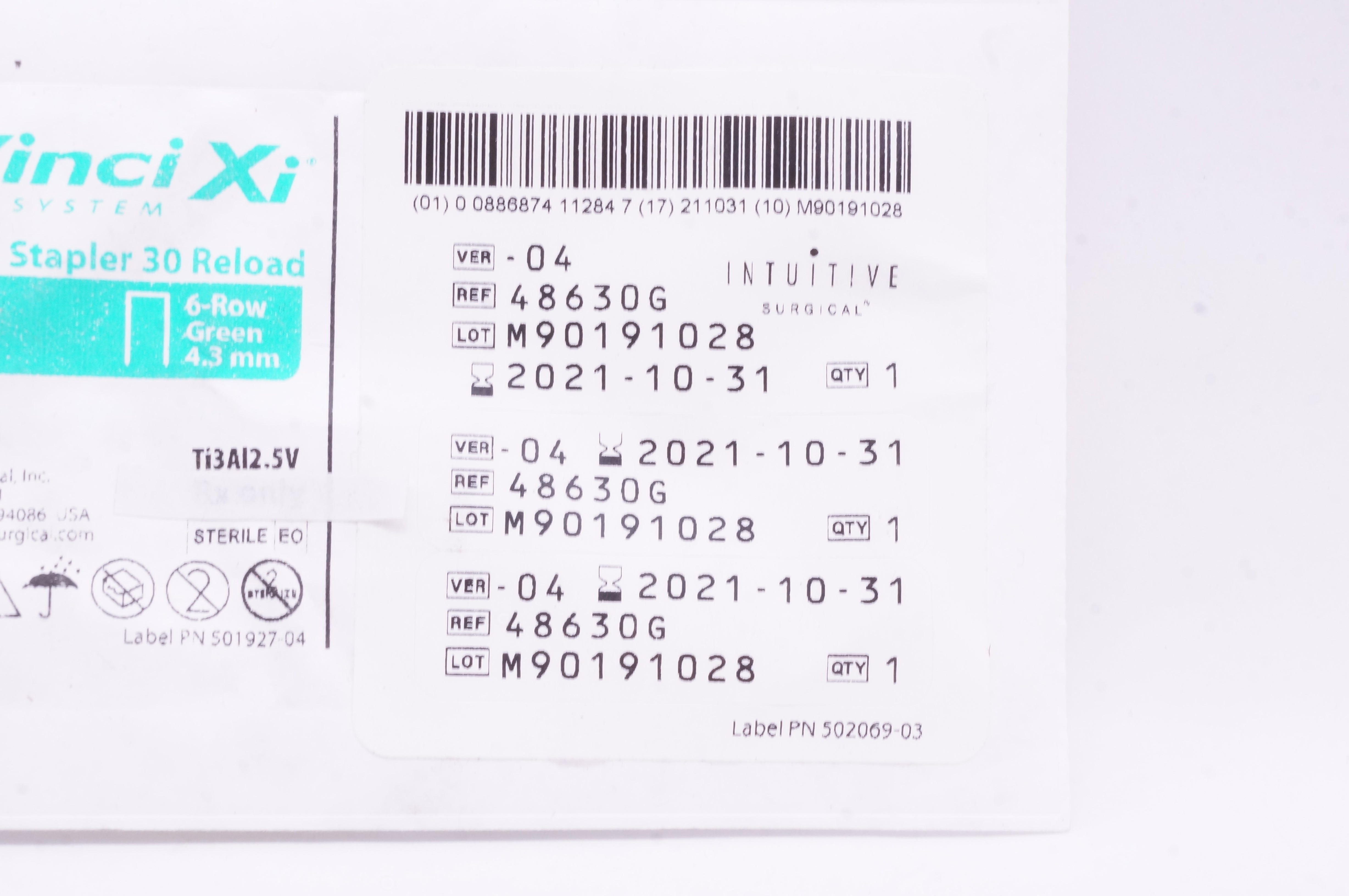 - Intuitive Surgical 48630G Da Vinci XI EndoWrist Stapler 30 Reload 30mm, 6-Row (x)
