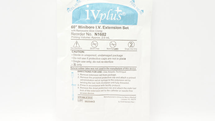 - IV Plus N1602 60inch Microbore I.V. Extension Set w/Removable Slide Clamp