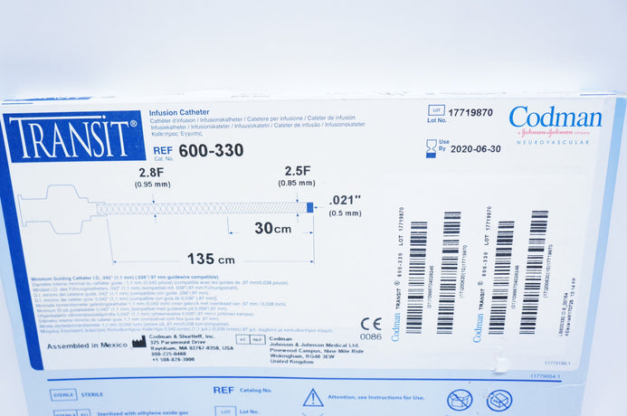 - Johnson & Johnson 600-330 Codman Infusion Cath.135cm x 2.8F x 2.5F x .021inch(x)