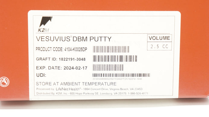 - K2M 4104-K0025DP Vesuvius DBM Putty Osteobiologic System, 2.5 CC (x)