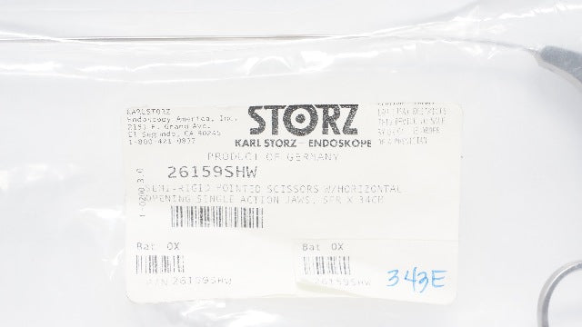 - Karl Storz 26159SHW Semi-Rigid Pointed Scissors w/ Horizontal Opening 5Fr x 34cm