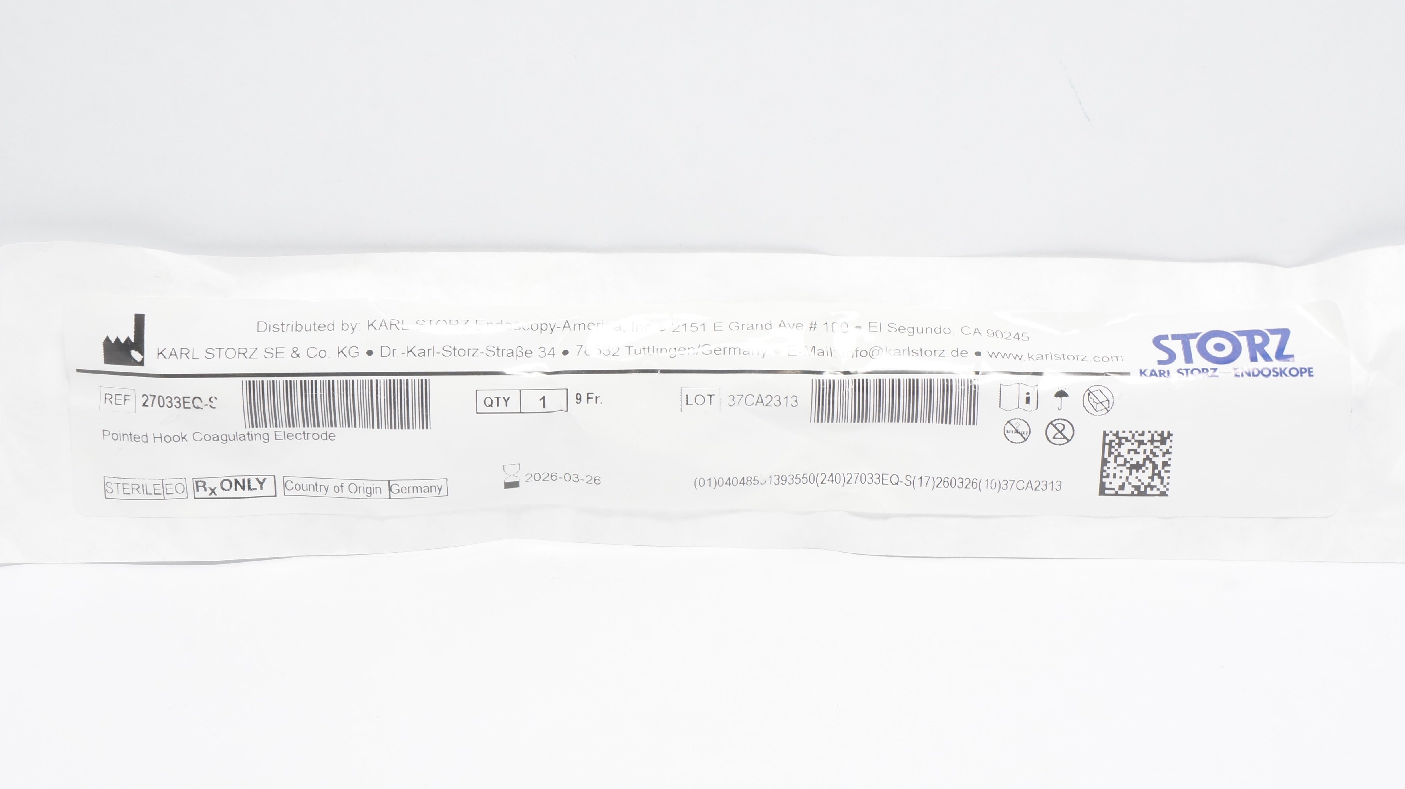 - Karl Storz 27033EQ-S Pointed Hock Coagulating Electrode 9Fr