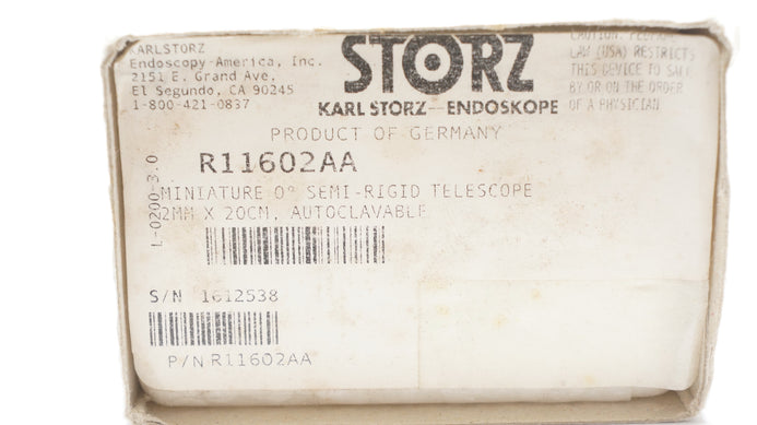 - Karl Storz Endoscope R11602AA Miniature 0° Semi-Rigid Telescope 2mm x 20cm