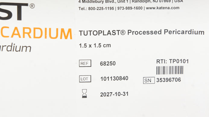 - Katena 68250 Tutoplast, Processed Pericardium, Dehydrated Human 1.5 x 1.5cm