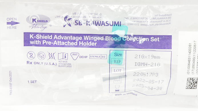 - Kawasumi DBMH-21G K-Shield Advantage Winged Blood Collection Set, 21G x19mm