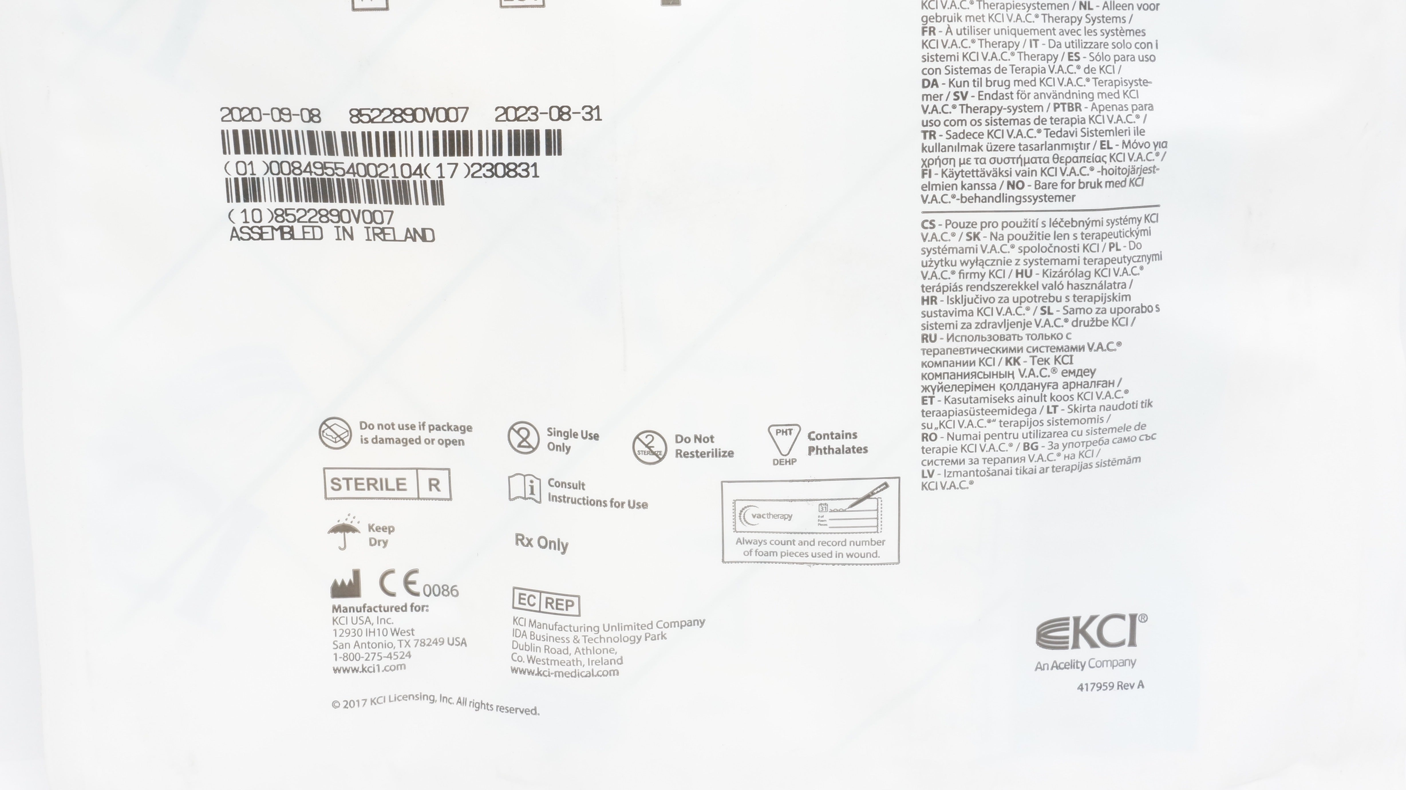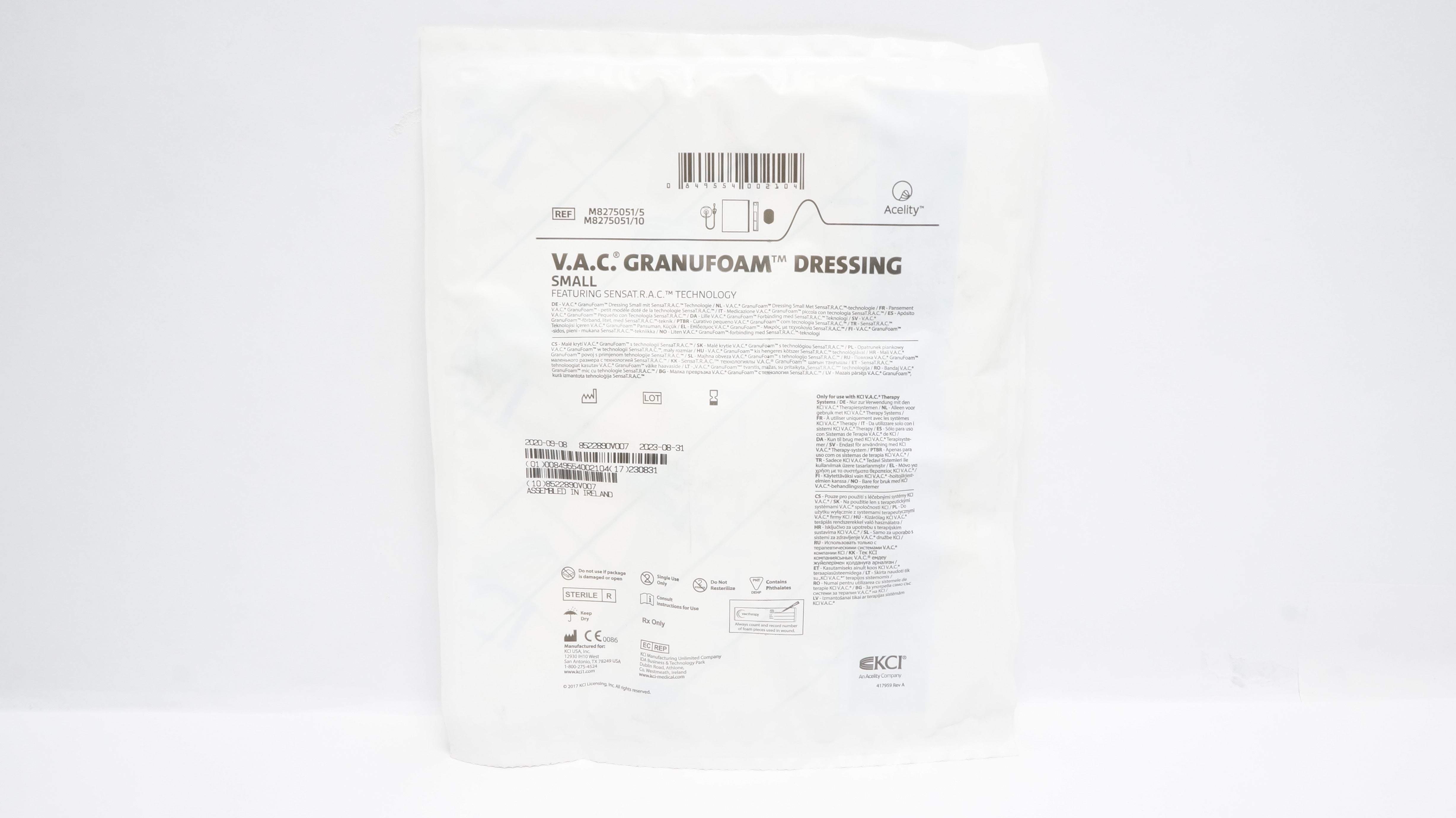 - KCI M8275051/5 V.A.C. Granufoam Dressing Featuring SENSAT.R.A.C. Technology (x)