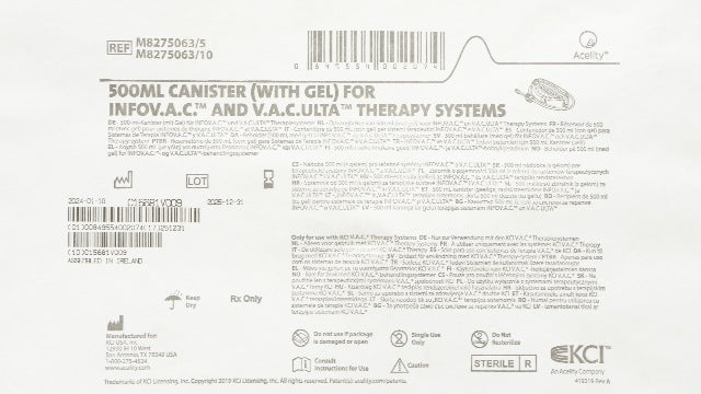 - KCI M8275063/5 Canister w/Gel for INFOVAC & V.A.C. Ulta Therapy Systems. 500mL