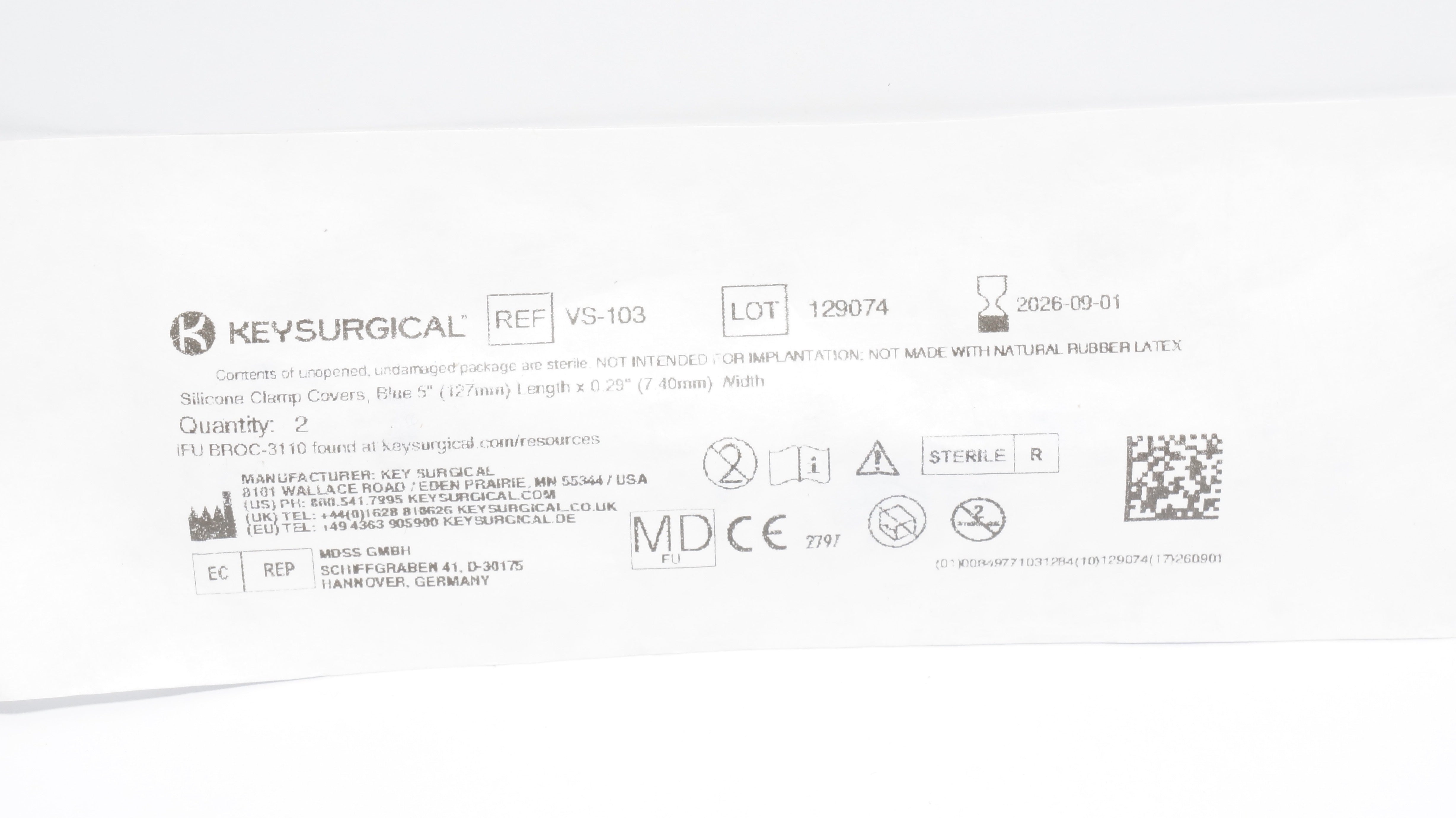 - KeySurgical VS-103 Silicone Clamp Covers, Blue 5inch x 0.25inch - Pack of 2