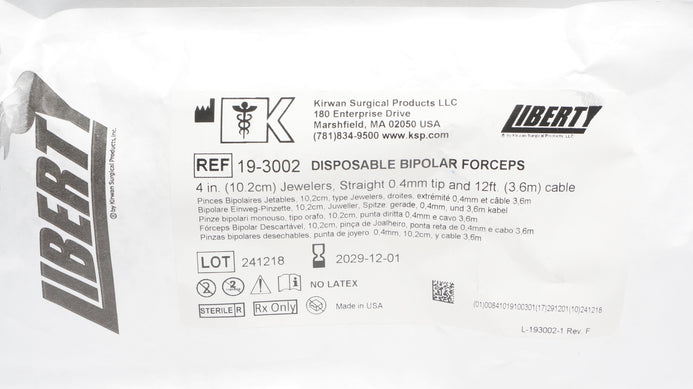 - Kirwan Surgical 19-3002 Disposable Bipolar Forceps Jewelers, Straight, 4inch
