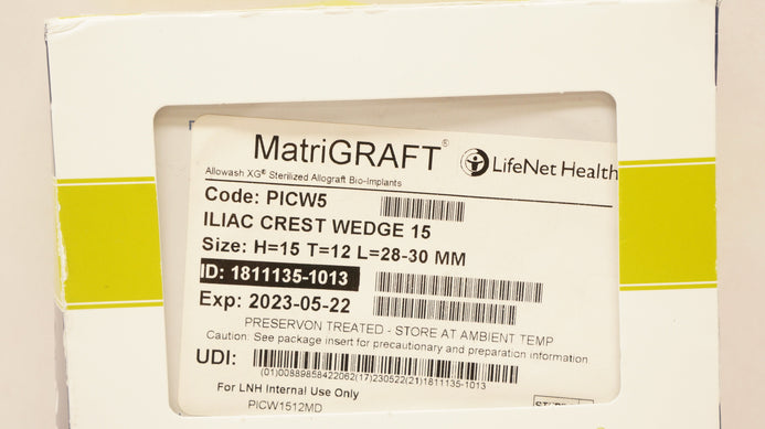 - LifeNet Health 1811135-1013 PICW5 MatriGRAFT H=15 T=12 L=28 30mm