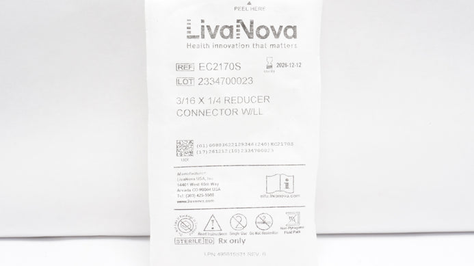 - LivaNova EC2170S 3/16 x 1/4inch Reducer Connector w/LL