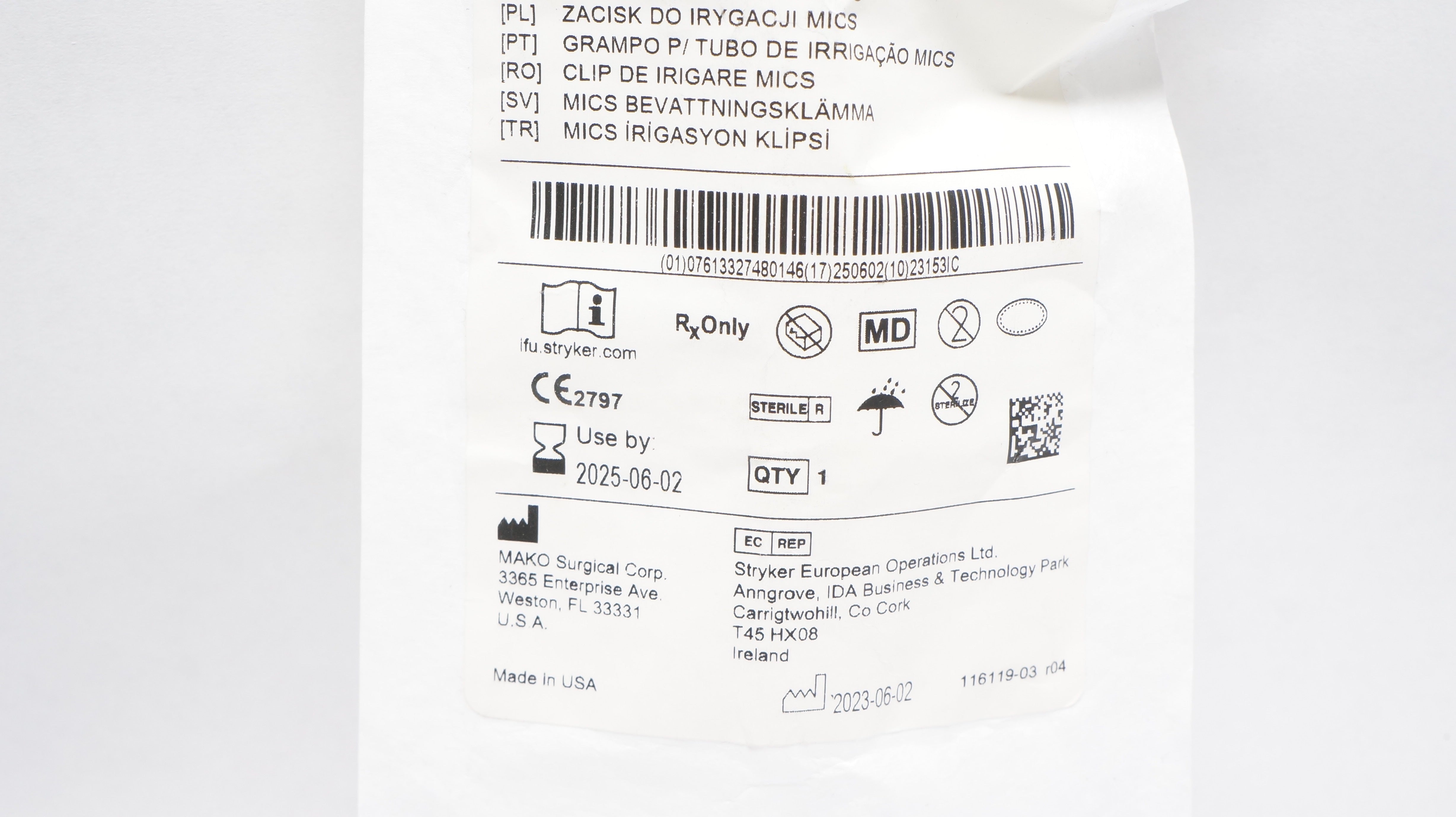 - MAKO Surgical 111331 Stryker MICS Irrigation Clip (x)