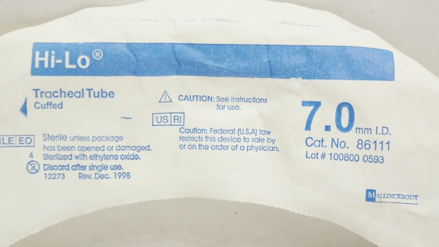 - Mallinckrodt 86111 Hi-Lo Oral/Nasal Tracheal Tube Cuffed 7.0 ID