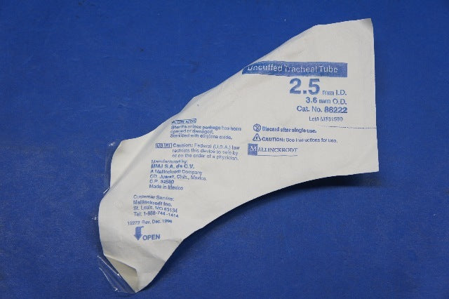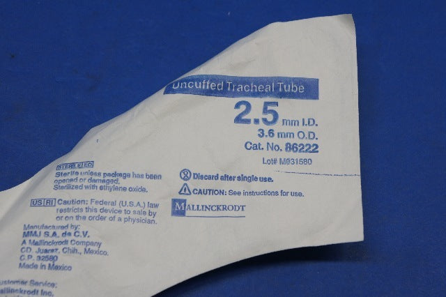 - Mallinckrodt 86222 Uncuffed Tracheal Tube 2.5mm x 3.5mm
