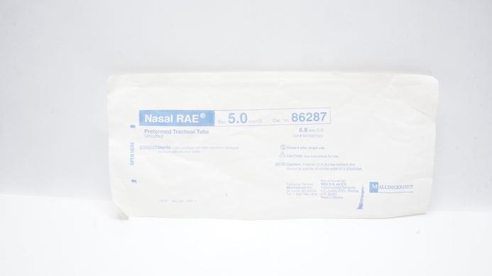 - Mallinckrodt 86287 Nasal RAE Tracheal Tube Uncuffed 5.0mm ID x 6.8mm OD