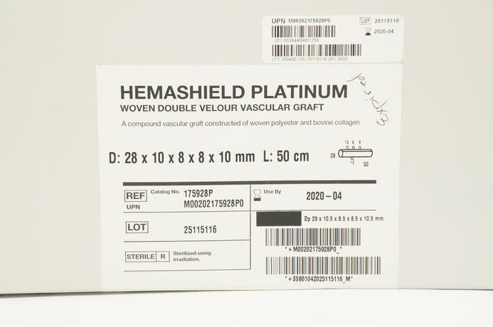 - Maquet 175928P Hemashield Knitted Double Velour Cardiovascular 28mm x 50cm (x)