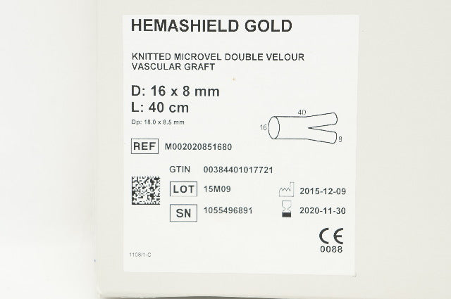 - Maquet M002020851680 Hemashield Gold Knitted Vascular Graft 16 x 8mm x 40cm (x)