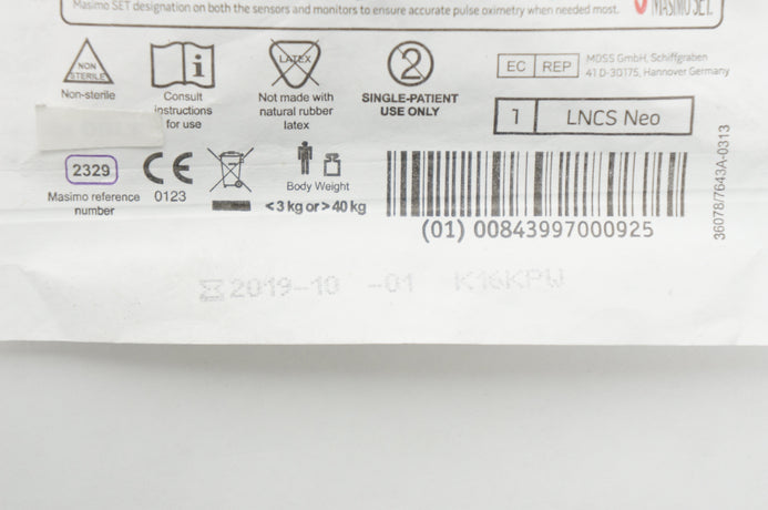 - Masimo 2329 LNCS Neo SpO2 Adult Pulse Oximeter Adhesive Sensor 40kg (x)