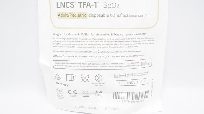 - Masimo 3858 LNCS TFA-1 Adult/Pediatric Disposable Transflectance Sensor >10kg