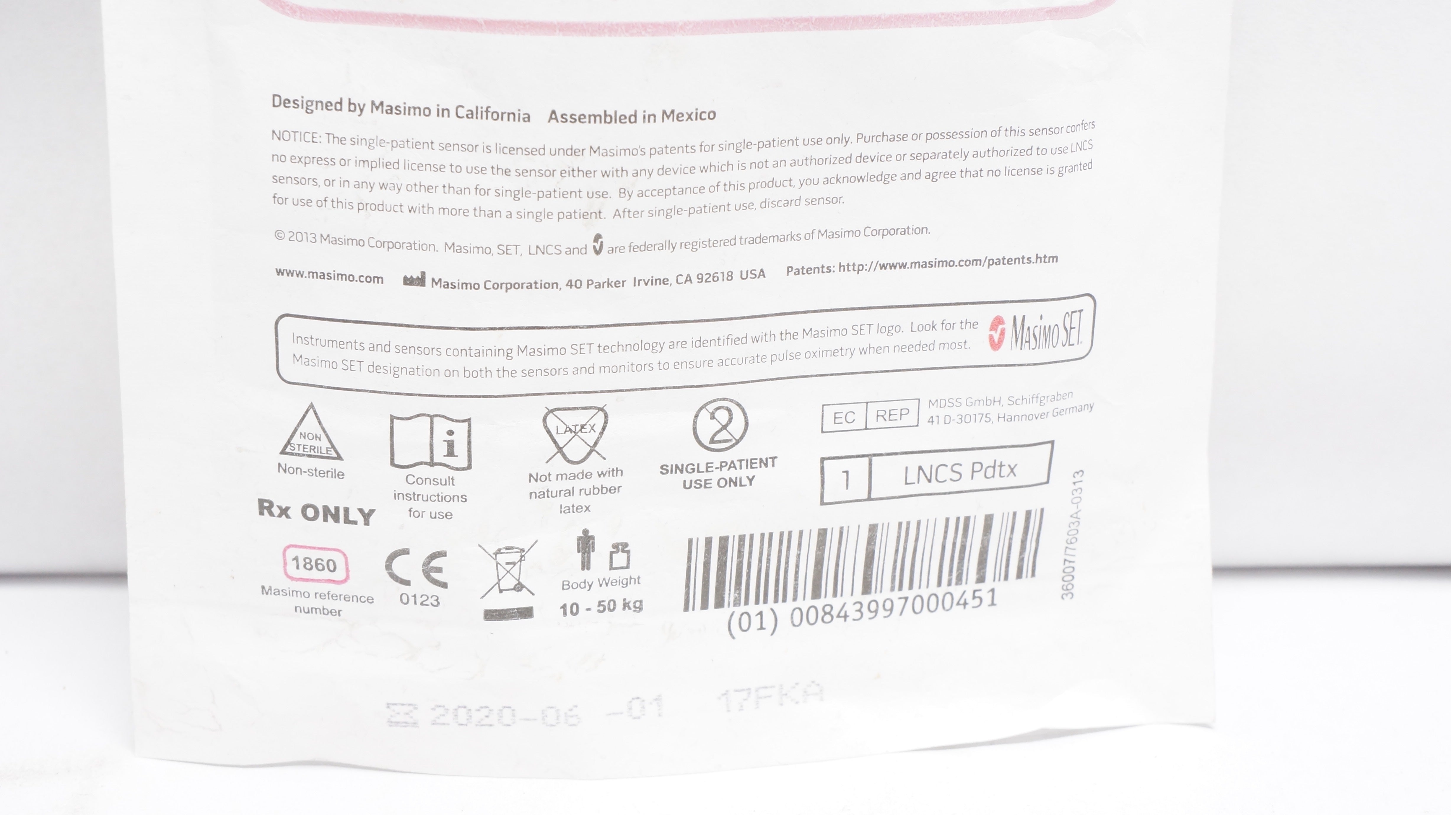 - MasimoSet 1860 LNCS Pdtx SpO2 Pediatric Pulse Oximeter 10-50kg (x)