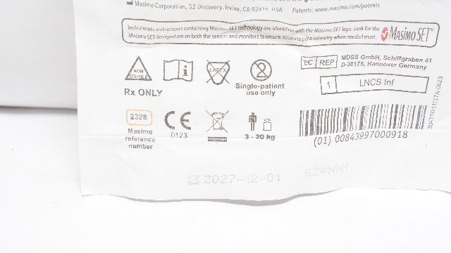 - MasimoSet 2328 LNCS Infant SpO2 Pulse Oximeter Adhesive Sensor 3kg - 20kg