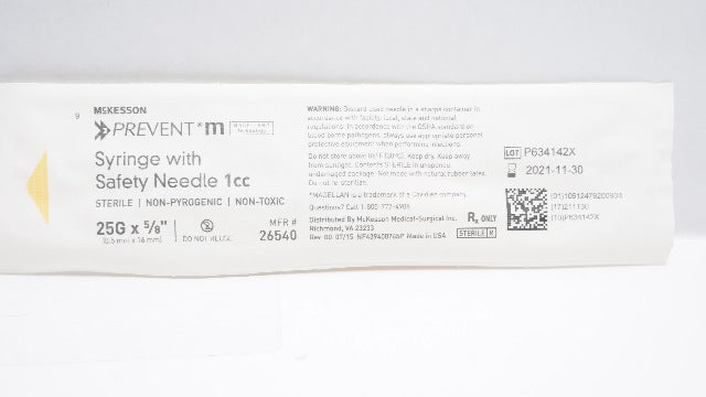 - McKesson 26540 Prevent M Syringe W/ Safety Ndle 1cc 25G x 5/8inch (x)